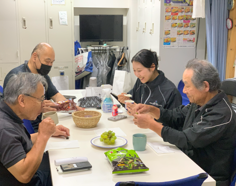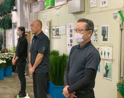 朝礼にて一日の仕事の流れを確認し、ミスの無いよう気を引き締めます。